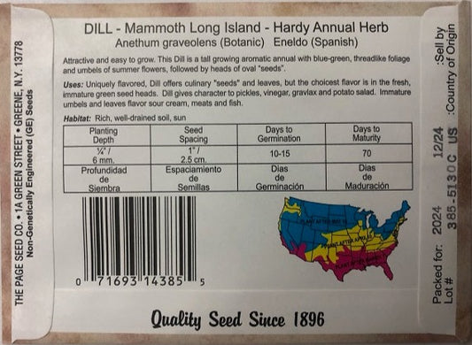 DILL - MAMMOTH LONG ISLAND 350MG HEIRLOOM NON GMO