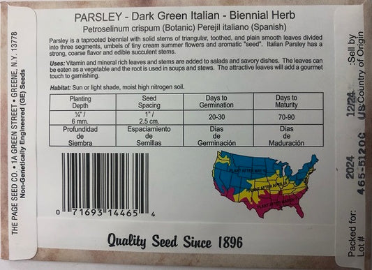 PARSLEY - DARK GREEN ITALIAN 1.2G HEIRLOOM NON GMO