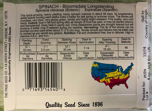 SPINACH - BLOOMSDALE LONGSTANDING 4G HEIRLOOM NON GMO
