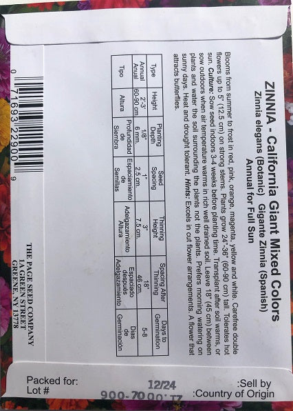 LIBERTY ZINNIA - CALIFORNIA GIANT MIX 360MG