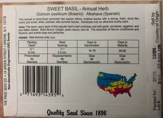 Sold outSWEET BASIL 1.5G HEIRLOOM NON GMO