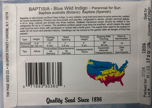 BAPTISIA - BLUE WILD INDIGO 500 MG HERILOOM NON GMO