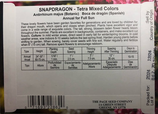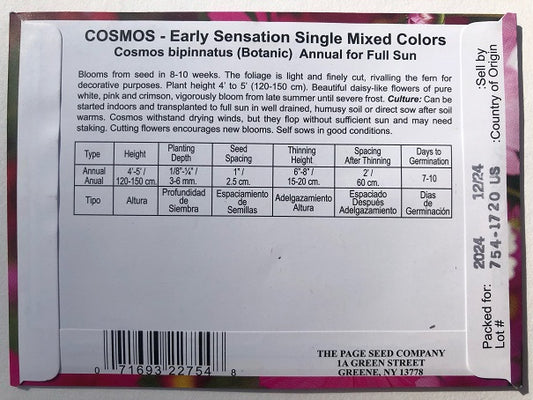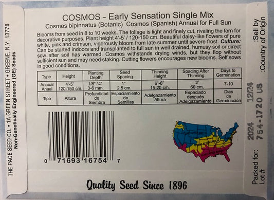 COSMOS - EARLY SENSATION MIXED COLORS 900MG HEIRLOOM NON GMO