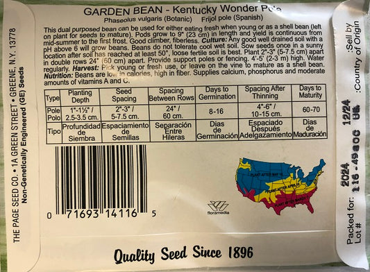 GARDEN BEAN - KENTUCKY WONDER POLE 14G HEIRLOOM NON GMO