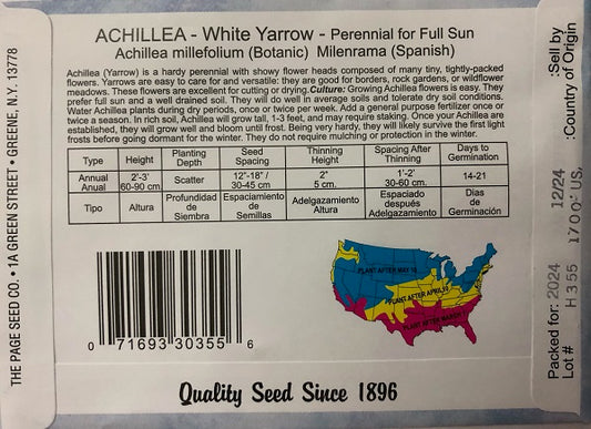 ACHILLEA - WHITE YARROW 250 MG HEIRLOOM NON GMO