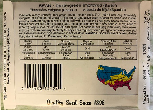 GARDEN BEAN - TENDERGREEN IMPROVED (BUSH) 14G HEIRLOOM NON GMO