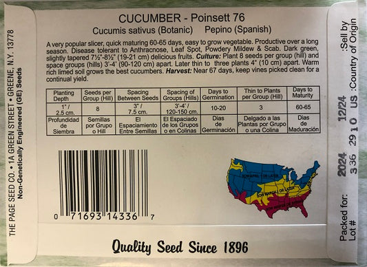 CUCUMBER - POINSETT 76 2G HEIRLOOM NON GMO