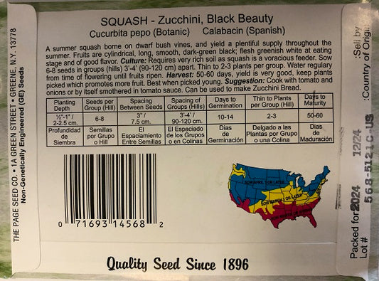 SQUASH - ZUCCHINI BLACK BEAUTY 4G HEIRLOOM NON GMO
