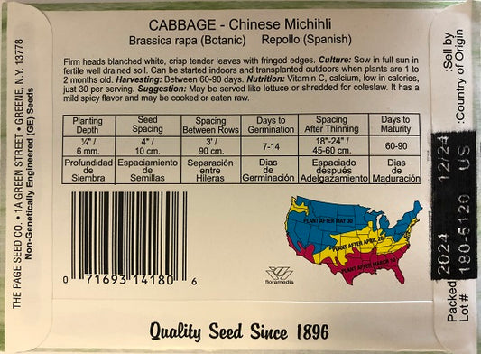 CABBAGE - CHINESE MICHIHLI 2G HEIRLOOM NON GMO