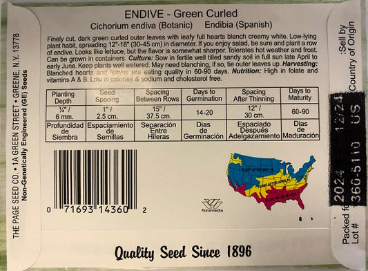 ENDIVE - GREEN CURLED 1.5G HEIRLOOM NON GMO