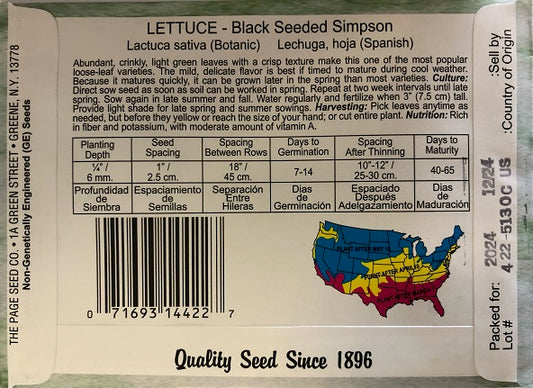 LETTUCE - BLACK SEEDED SIMPSON 1.5G HEIRLOOM NON GMO