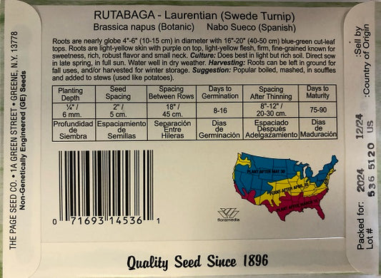 RUTABAGA - LAURENTIAN 4G HEIRLOOM NON GMO