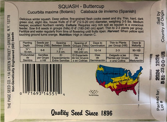 SQUASH - BUTTERCUP 4G HEIRLOOM NON GMO