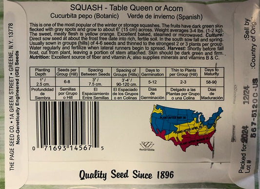 SQUASH - TABLE QUEN OR ACORN 4G HEIRLOOM NON GMO