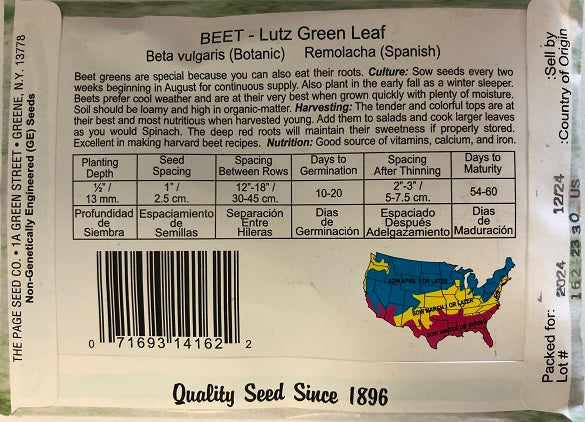 BEETS - LUTZ GREEN LEAF 4G HEIRLOOM NON GMO