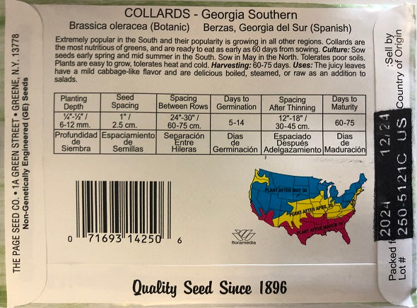Extremely popular in the South and their popularity is growing in all other regions. Collards are the most nutritious of greens, and are ready to eat as early as 60 days from sowing.