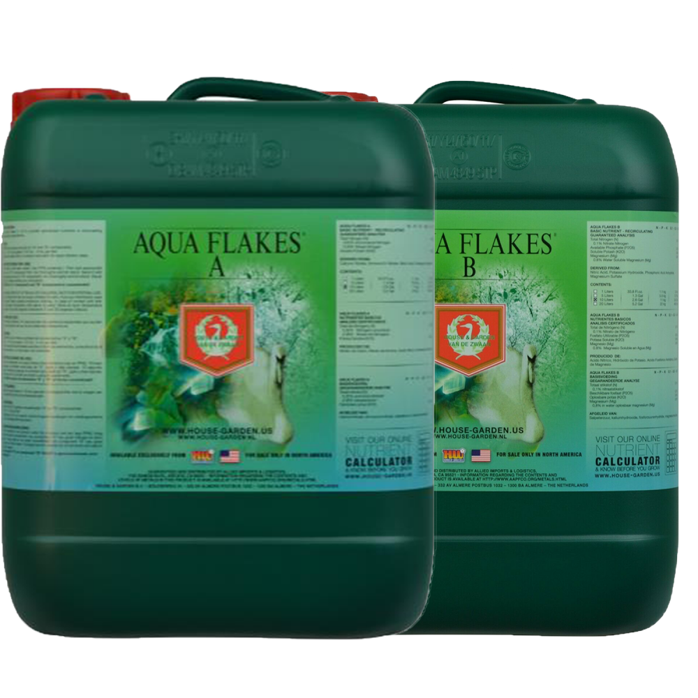 Aqua Flakes A&B provides the highest quality, fully soluble nutrients designed specifically for recirculating hydroponic applications. This low ppm base is perfect for ebb and flow, DWC, aeroponics, and any type of rockwool. Also use Aqua Flakes in inert peat mixes for best results.