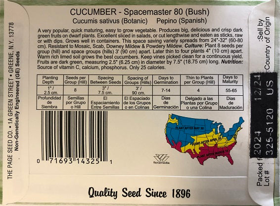 CUCUMBER - SPACEMASTER 80 1.2G HEIRLOOM NON GMO