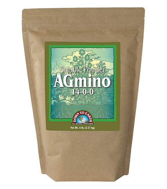 Down To Earth’s Soluble Powder Agmino is a professional-grade, water-soluble nitrogen fertilizer derived from vegetable protein for supplementing plant nutrient requirements or correcting nitrogen deficiencies in all types of plants including vegetables, flowers, trees, shrubs, vines and turf grass.
