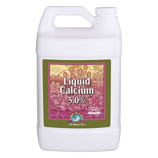 Down To Earth’s Liquid Calcium 5% is an essential nutrient that plays many important roles in plant growth. DTE Calcium is needed for cell wall formation, normal cell division in new growth and proper fruit development. Calcium deficiency can result in poor root development, yellowing of new plant tissue and fruit and vegetable abnormalities, such as blossom end rot in tomatoes. Foliar additions of calcium can be used to correct or prevent deficiencies of this valuable nutrient.