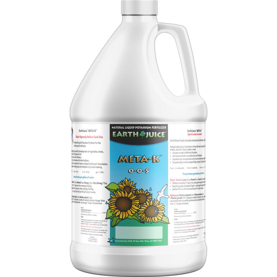 A natural liquid potassium formulation. Use Meta-K to correct potassium deficiencies or when there is a need for additional potassium. Meta-K will help improve: drought resistance, nutrient assimilation and the plant’s ability to support higher yields. Especially recommended during budding, flowering and fruiting. May be used alone or together with Earth Juice Grow or Bloom and a variety of fertilizers. For indoor/outdoor plants, soil and hydroponics.