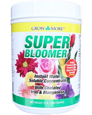 Grow More Super Bloomer 15-30-15 1.5 lb (7418) is a premium quality fertilizer that's specially formulated to help improve flower blooms. It's exclusively created for fruiting, flowering, and colored foliage plants and it's ideal to use as a starter and transplant solution. It contains chelated iron and manganese that will effectively help produce more flowers and beautiful blooms.