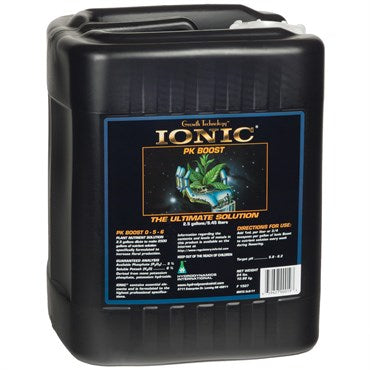 Ionic® PK Boost is formulated to be applied during the final few weeks before harvest of most fruiting and/or flowering crops. It is designed to work with Ionic® Bloom products, but is also compatible with most liquid bloom nutrients. Ionic® Boost delivers the key mineral elements phosphorus (P) and potassium (K) in a pure form that is instantly accessible to the plant. These crucial ingredients are used in abundance by plants in their fruiting or flowering cycle and the extra levels provided by Ionic® Boost can lead to larger flowers and greatly increased fruit and vegetable yields