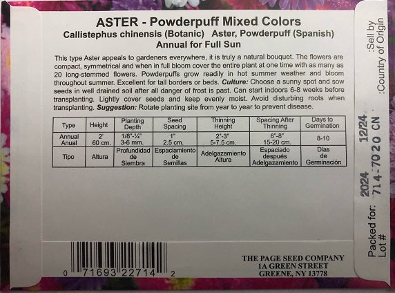 This type of Aster appeals to gardeners everywhere, it is truly a natural bouquet. The flowers are compact, symmetrical and when in full bloom cover the entire plant at one time with as many as 20 long stemmed flowers. Powderpuffs grow readily in hot summer weather and bloom through summer, excellent for tall borders or beds.