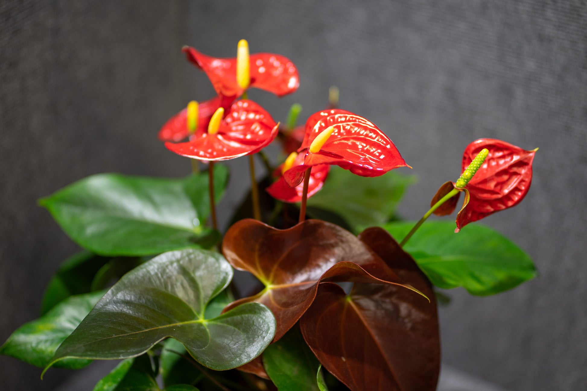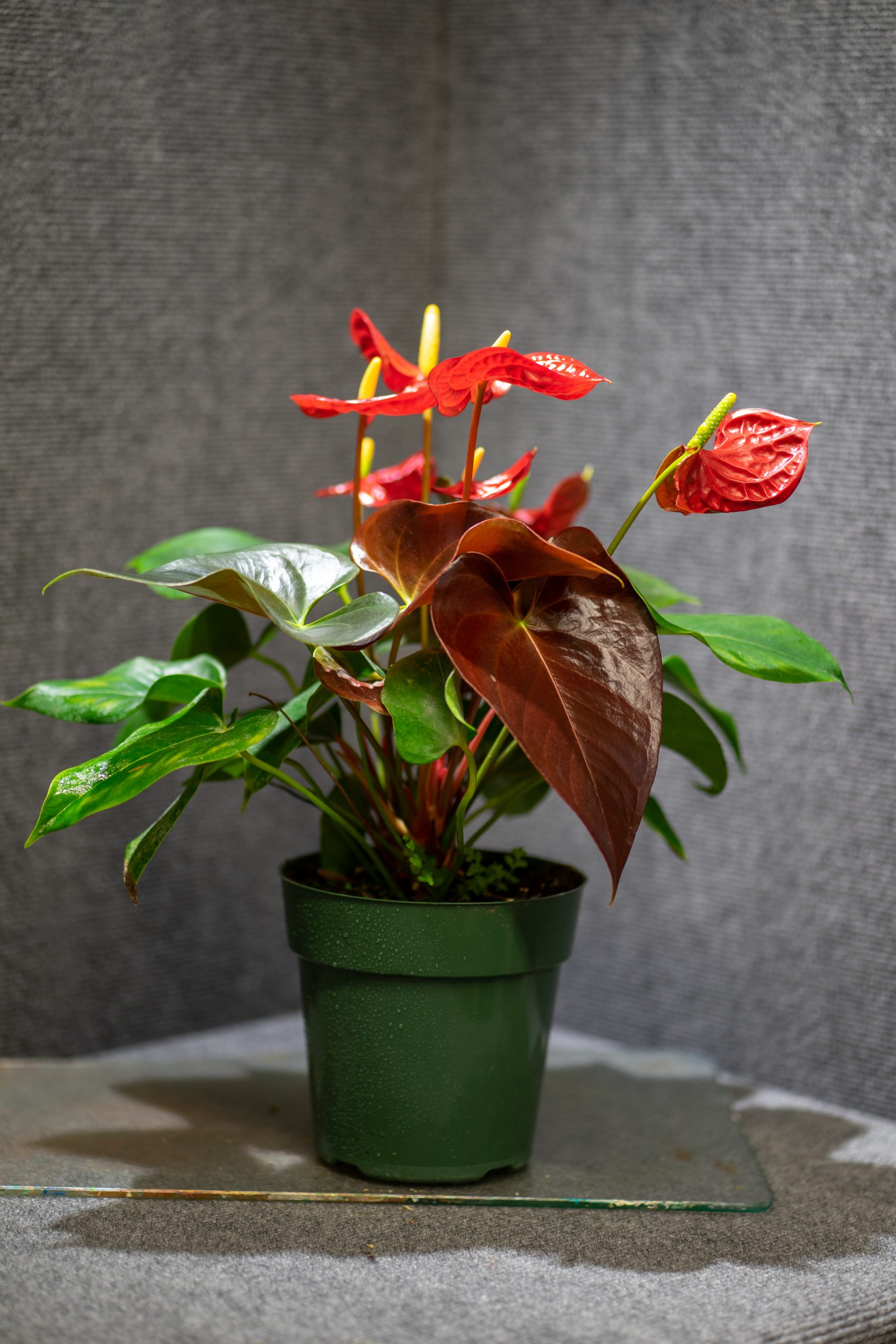 Anthuriums like a humid environment and good nutrition to bloom and thrive. Lacking these and they can still survive and provide a beautiful plant for a long time, just don’t expect it to grow and bloom a lot. Pests to look out for: low humidity leaf burn and root rot if overwatered.