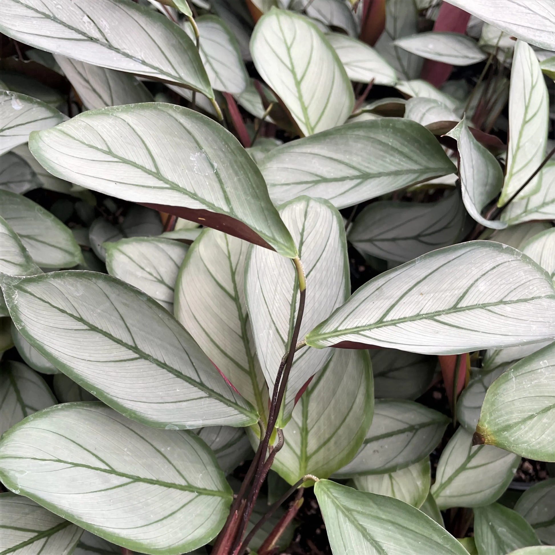 Ctenanthe setosa ‘Grey Star’ is a lovely foliage houseplant with elliptical leaves growing in an upright clump on thin, tall stems. The leaves are a majestic silver color, with silvery-green veining and gorgeous, red wine undersides.