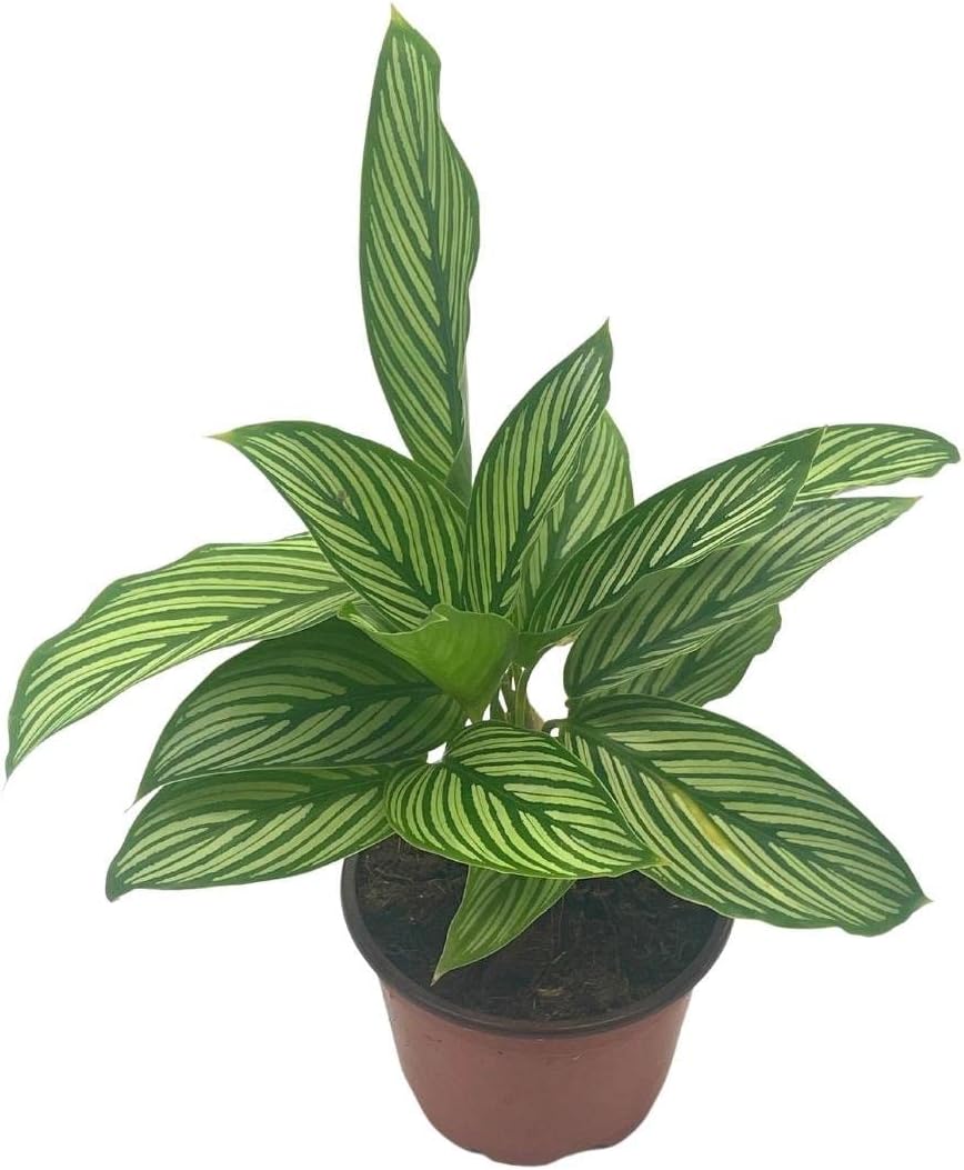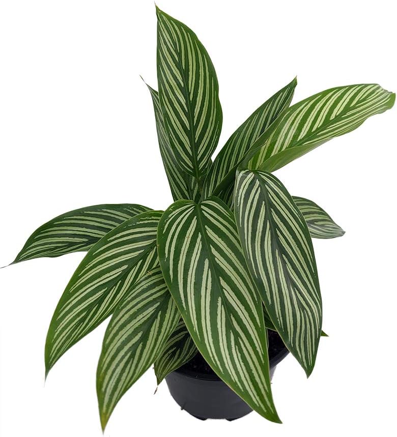 The Vittata Calathea is a lovely plant with absolutely stunning foliage. The leaves unfurl to reveal white pinstripes on a green background. The stripes almost look hand-drawn and radiate out from the midrib. The leaves are rounded at the base and taper to a point. Also known as Prayer Plants, the leaves of this tropical beauty fold up at night and lower during the day. Calatheas have specific care requirements, but they are worth the effort.