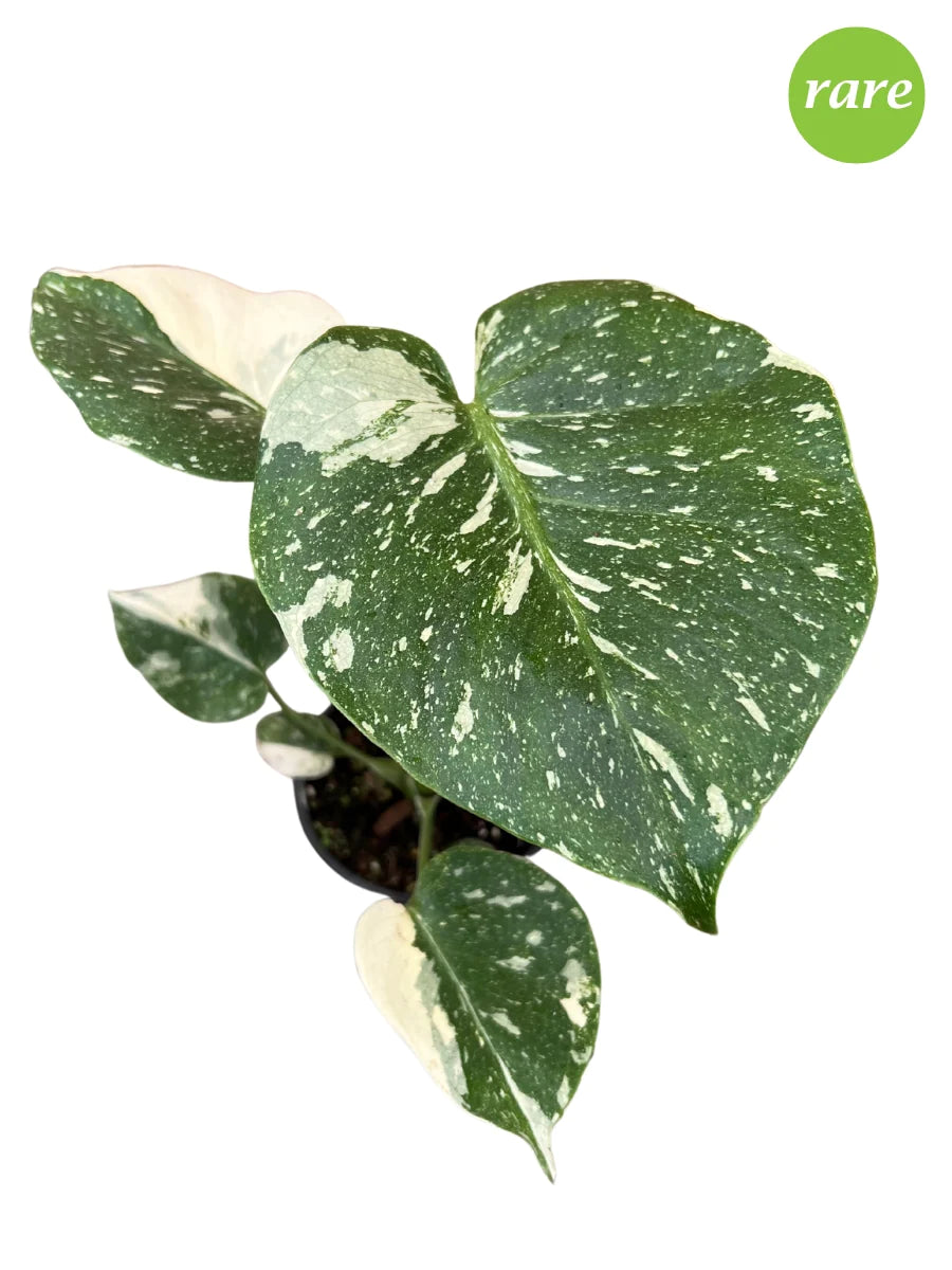 The highly coveted Monstera ‘Thai Constellation’ is a Monstera cultivar with eye-catching variegated cream and green heart-shaped leaves. This is a rare find! The unique, speckled coloring that puts the "constellation" in this variety's name (the variegation is likened to the starry night sky) is due to a gene mutation, which means it can only be reproduced through propagation. It will thrive best in bright, indirect light, which will help it retain its variegation. While the 'Thai Constellation grows a bit more slowly than straight-species varieties, it will still climb tall and can produce gorgeous, fenestrated leaves up to 15 inches wide, when given the right conditions.