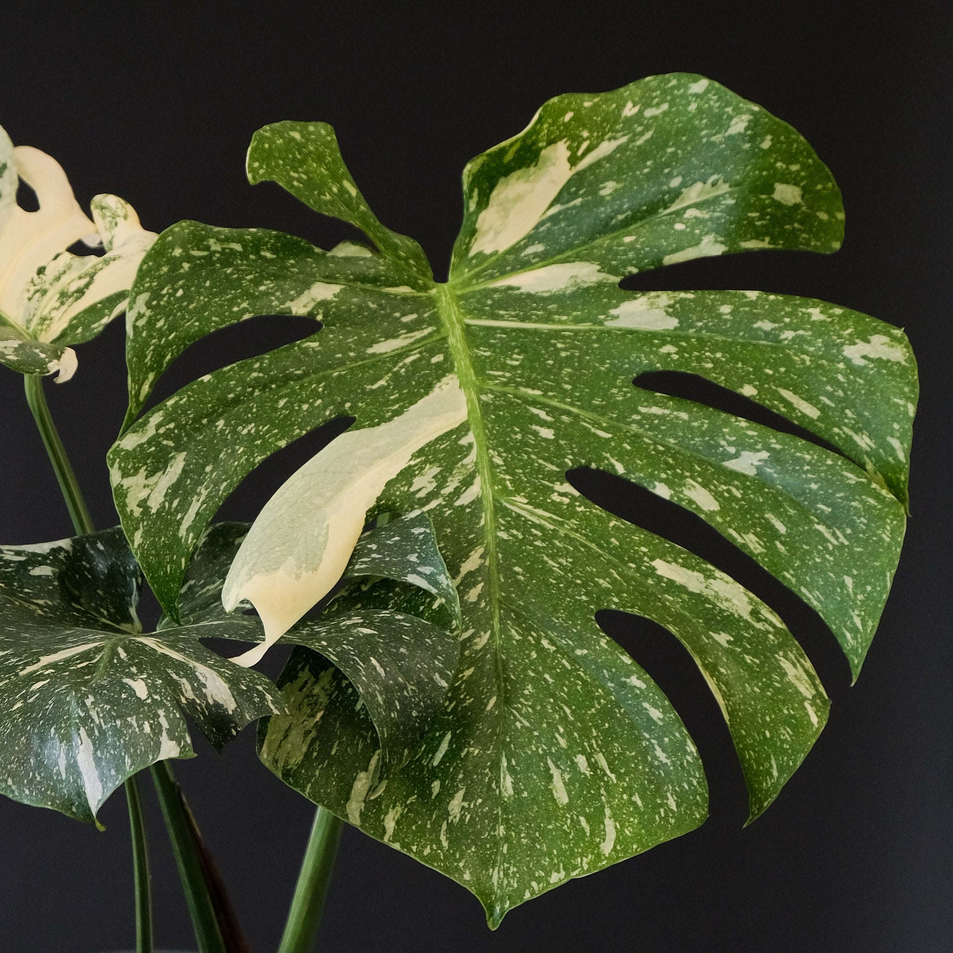 The highly coveted Monstera ‘Thai Constellation’ is a Monstera cultivar with ye-catching variegated cream and green heart-shaped leaves. This is a rare find! The unique, speckled coloring that puts the "constellation" in this variety's name (the variegation is likened to the starry night sky) is due to a gene mutation, which means it can only be reproduced through propagation. It will thrive best in bright, indirect light, which will help it retain its variegation. While the 'Thai Constellation grows a bit more slowly than straight-species varieties, it will still climb tall and can produce gorgeous, fenestrated leaves up to 15 inches wide, when given the right conditions.