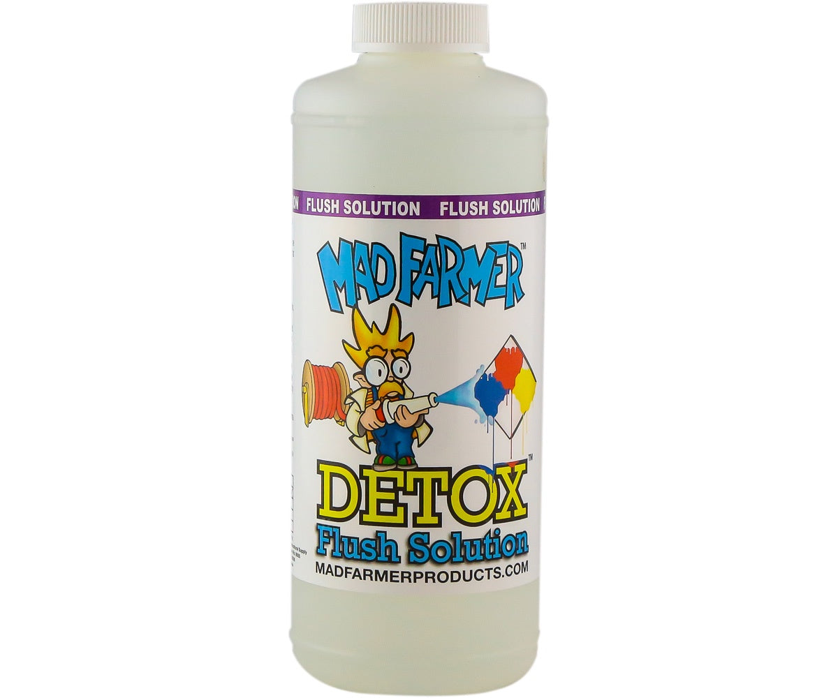Mad Farmer’s Detox is a flush solution specifically formulated to dissolve and remove excess salts that build up over time with the regular use of fertilizer. Detox eliminates toxic salts that accumulate in hydroponic systems, potting soils, coco coir and other growing media.