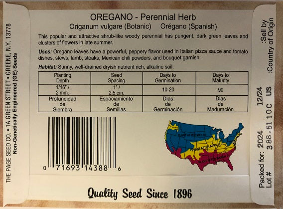 Popular and attractive shrub-like perennial grown for its flavorful leaves. Leaves may be used fresh or dried to add spark to Italian, Spanish and Mexican dishes as well as salad dressings, meat loaf, stew, lamb, or steaks. Grows 2′-2 1/2′ tall. Produces pink or white flowers.