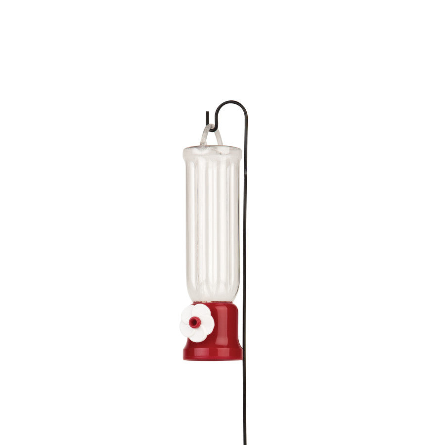 Pennington Planter Hummingbird feeder attracts hummingbirds to hanging flower baskets and planter boxes. This feeder disassembles completely for thorough cleaning and is dishwasher safe. A rust resistant miniature shepherd's hook is included. This hummingbird feeder is easy to use and can be used anywhere outdoors.