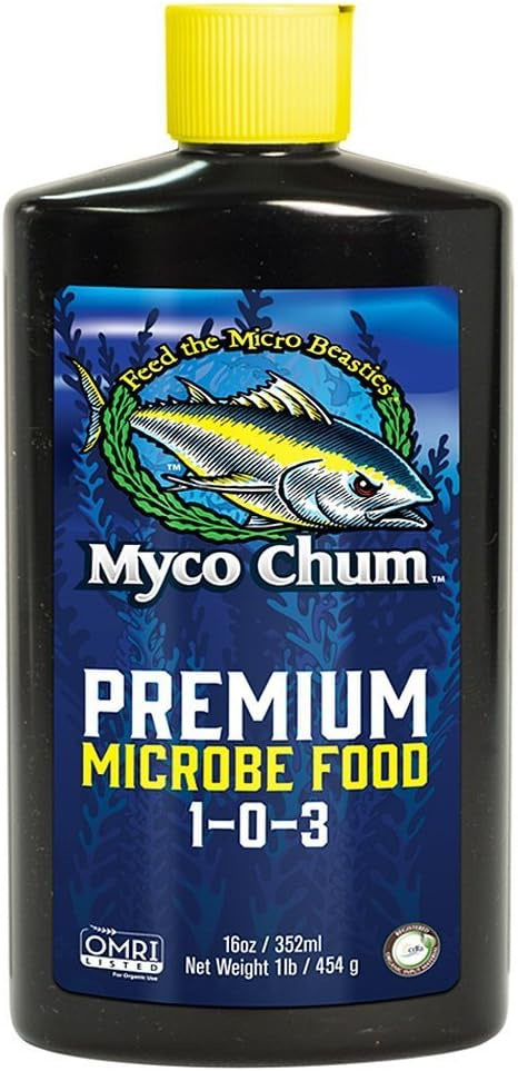 Plant Success Myco Chum (1-0-3) is a premium microbe food containing a perfect blend of molasses, fish emulsion, liquid kelp, humic acids and micro- and macronutrients. During the veg stage, plants are building both root and plant structure; Myco Chum provides macro- and micronutrients essential to this process. During the flowering phase, plants require the nutrients and complex grouping of carbs in Myco Chum.