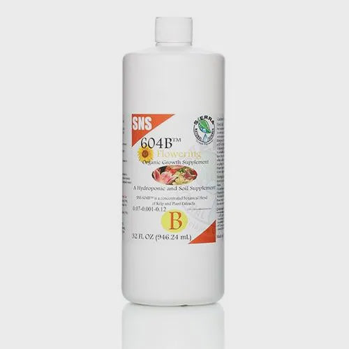 SNS-604A and SNS 604B are a one-part nutrient additive to be used throughout the plants growing and flowering cycle. Stimulates root growth and builds up hardy productive roots fast with 100% natural growth hormones.