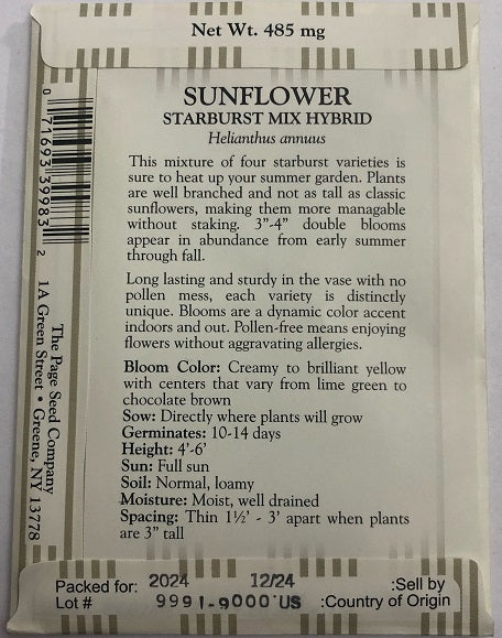 This mixture of four starburst varieties is sure to heat up your summer garden. Plants are well branched and not as tall as classic sunflowers, making them more manageable without staking. 3'-4' double blooms appear in abundance from early summer through fall.