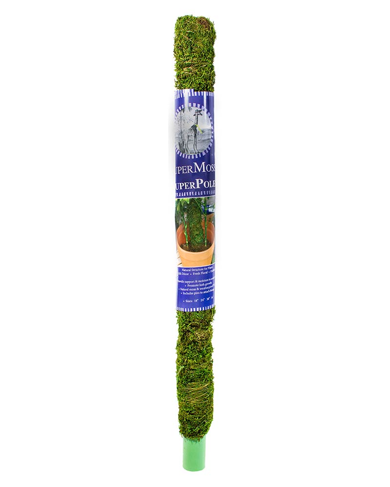 In nature, many forest plants achieve lush growth by climbing along tree trunks and attaching their roots to moss-covered bark. SuperMoss Moss Pole is a naturally absorbent support pole that helps aerial roots take hold and creates an ideal habitat for many climbing and upright plants. It's the next best thing to growing your plants in a forest! The SuperMoss Pole includes metal pins to easily secure the branches and foliage.