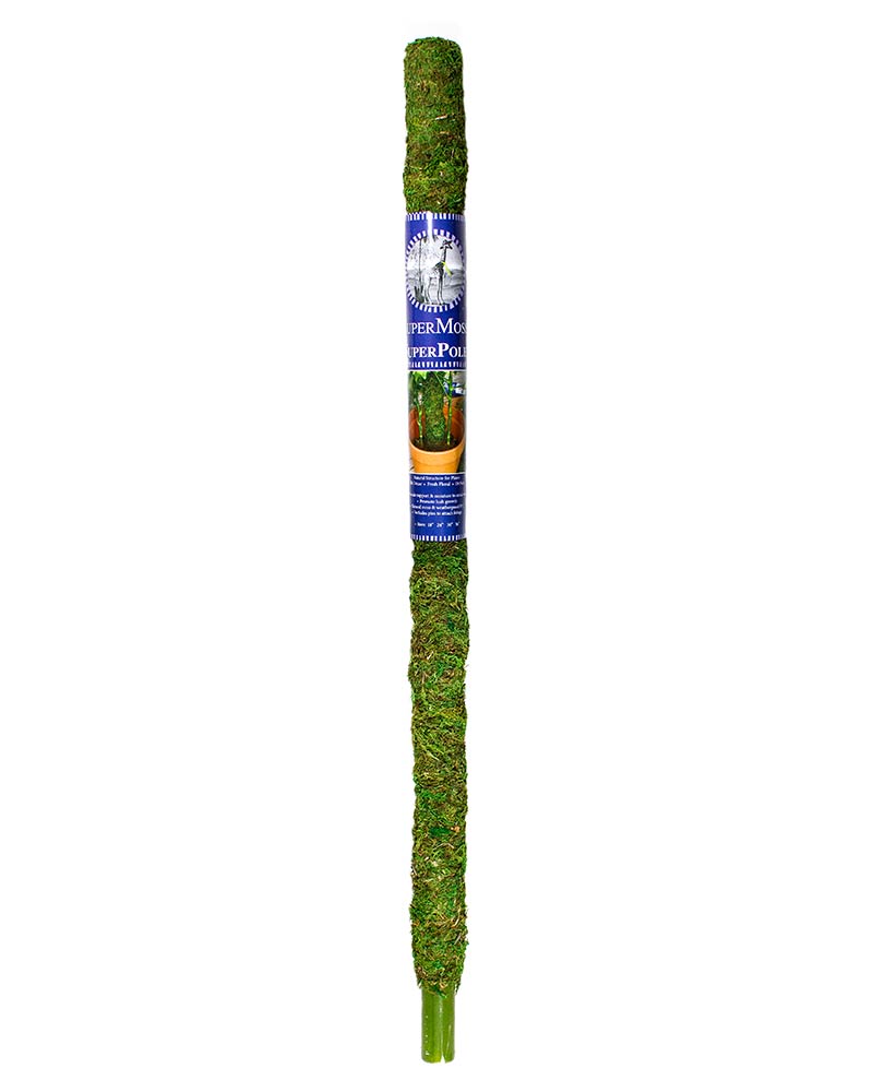 In nature, many forest plants achieve lush growth by climbing along tree trunks and attaching their roots to moss-covered bark. SuperMoss Moss Pole is a naturally absorbent support pole that helps aerial roots take hold and creates an ideal habitat for many climbing and upright plants. It's the next best thing to growing your plants in a forest! The SuperMoss Pole includes metal pins to easily secure the branches and foliage.