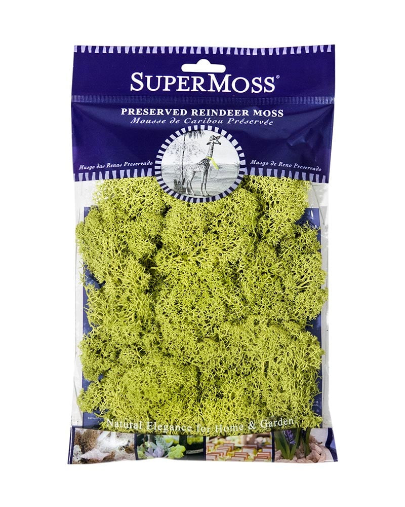 SuperMoss Reindeer Moss is one of our top selling mosses for floral décor. It adds natural accents to any floral arrangement. Choose from a variety of lush colors and pair your moss perfectly with your flowers' natural colors to give them true definition. Reindeer Moss has a fresh, soft, and spongy feel. Simple and fun to use, it is a true pleasure to work with and rest assured that it's beautiful color won't fade